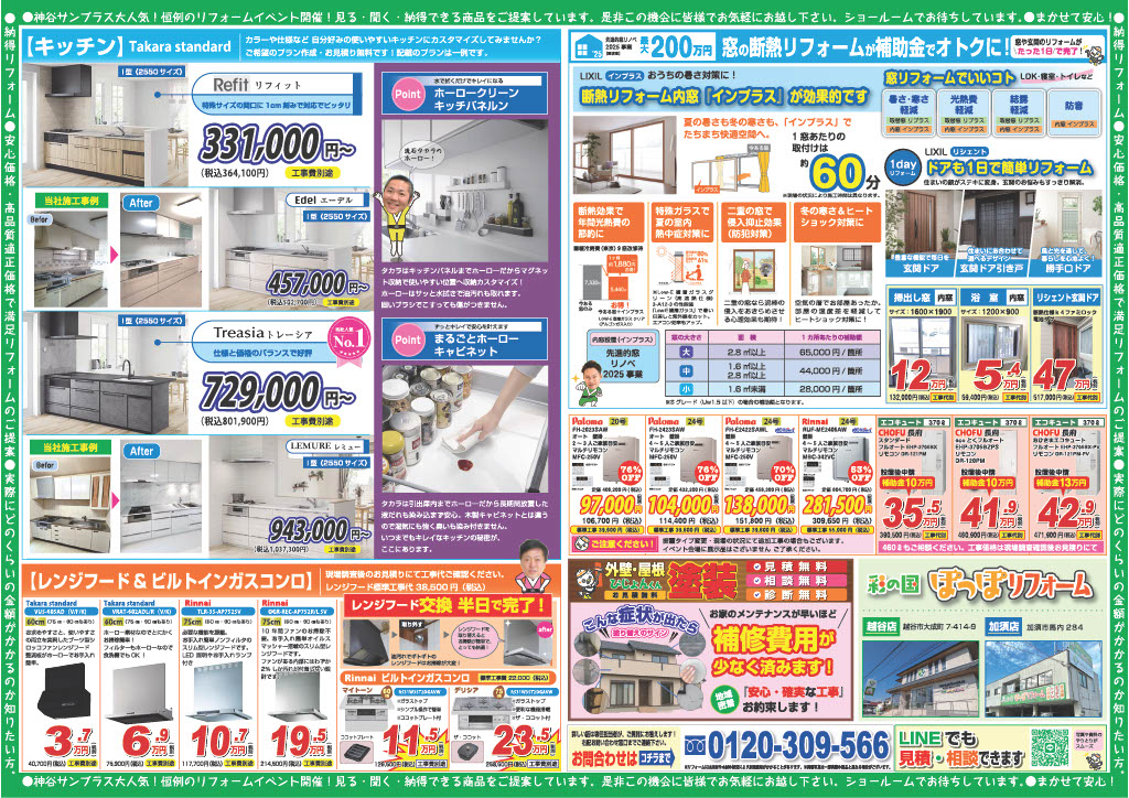 - 2025年9月27日(土)28日(日) 10時~16時 (会場:タカラスタンダード大利根ショールーム) 詳しくはこちら >