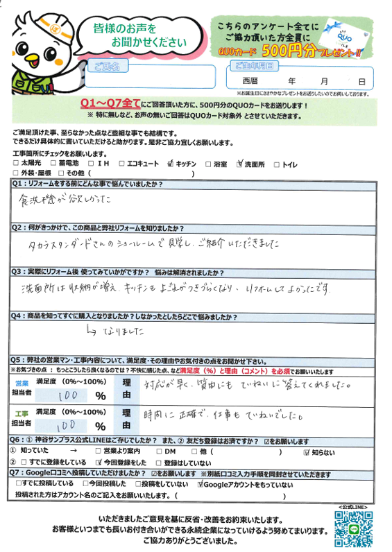 洗面化粧台は収納が増え、キッチンも汚れが付きにくくなりました。リフォームしてよかったです。