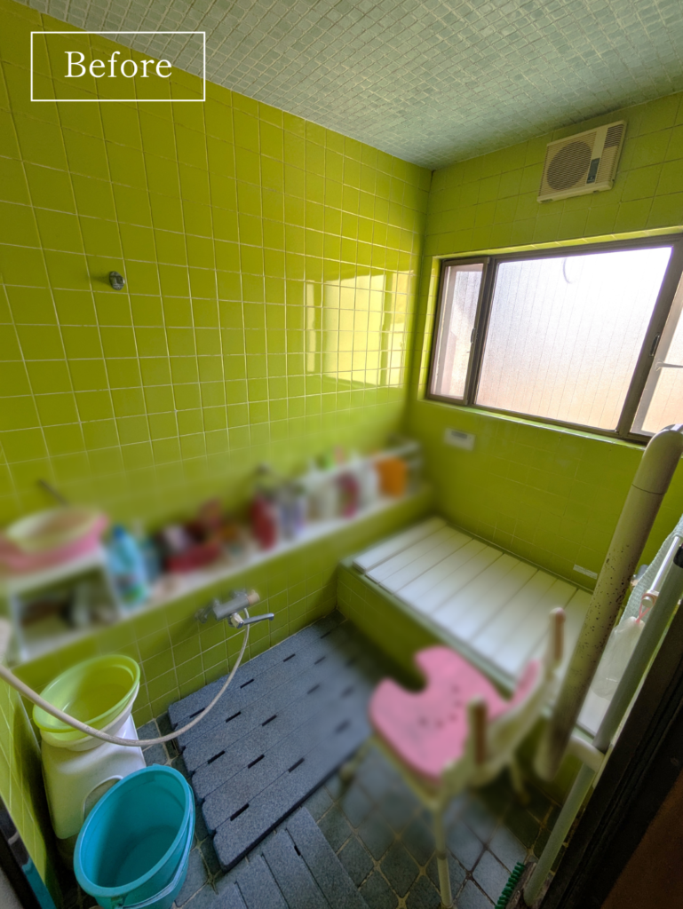 タイル張りで冬場に冷たさを感じるため、温かみのある浴室にしたいとのご相談をいただきました。既存の浴槽は2200mmでしたが、そこまでのサイズは不要とのご希望があり、使い勝手を考慮してサイズダウンしました。浴室全体がコンクリートに囲まれている構造のため、サイズや仕様に一定の制限はありましたが、その中でも可能な範囲で工夫を重ね、無事に納めることができました。